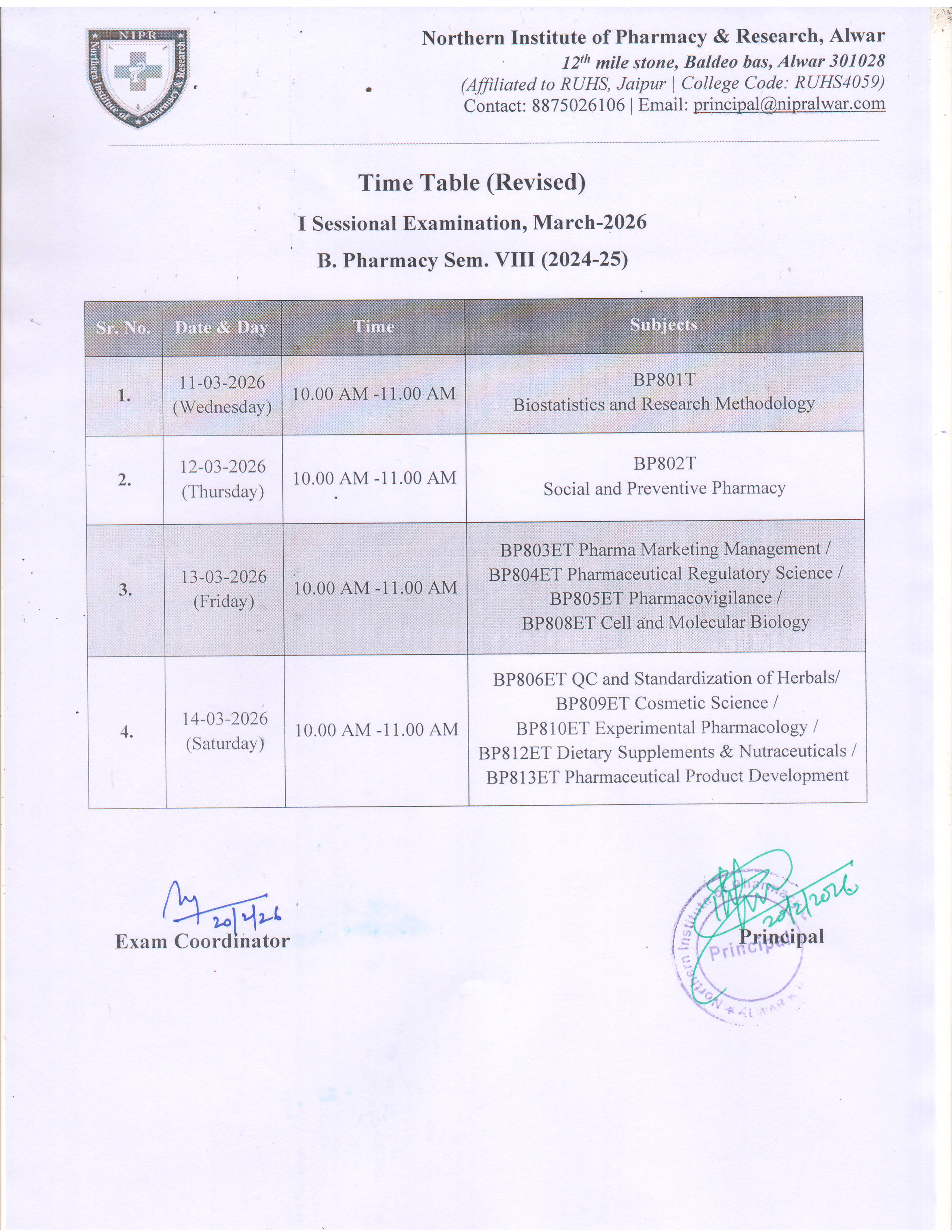 The Institute is duly approved by PCI and Affiliated to Rajasthan University of Health Sciences (RUHS), Jaipur